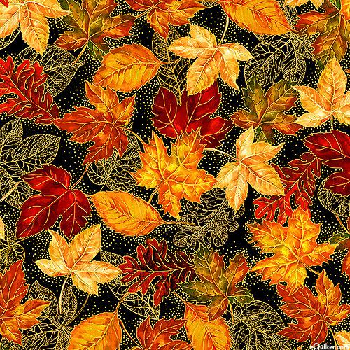 With gold metallic, 'Fall Leaves Metallic' from the 'Thankful' collection by Timeless Treasures.