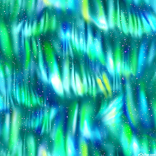 Aurora borealis creates a spectacular display of dancing lights across the sky as shimmering stars sparkle brilliantly in the distance. Digitally printed, taller auroras are about 1", from the 'Galaxy' collection by Oasis Fabrics.