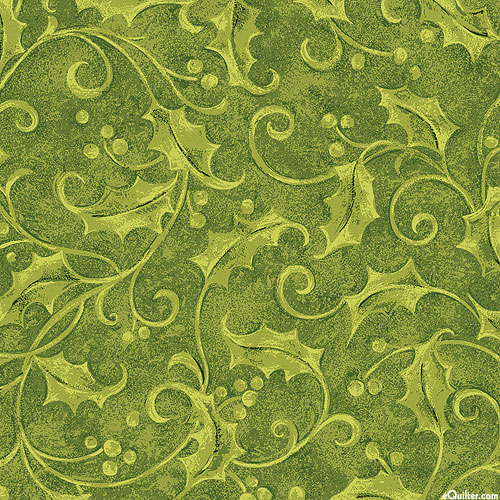 Swirling holly leaves are scattered across the design with festive berries tossed between. Larger leaves are about 1-1/4", 'Holly' from the 'Star Of Wonder - Star Of Light' collection by Nancy Halvorsen for Benartex Fabrics.