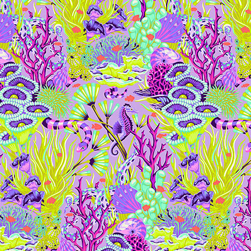Seahorses are about 4", 'Reef What You Sew' from the 'Floral Reef' collection by Tula Pink for Free Spirit Fabrics.