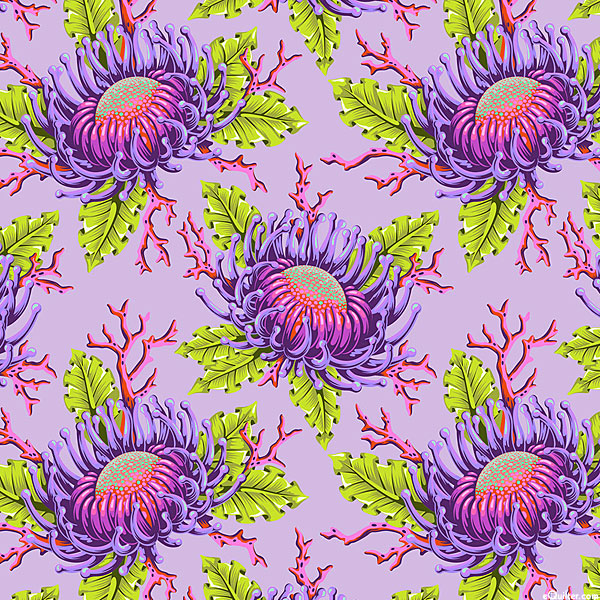 Coral are about 3-1/2", 'Friends & Anemones' from the 'Floral Reef' collection by Tula Pink for Free Spirit Fabrics.