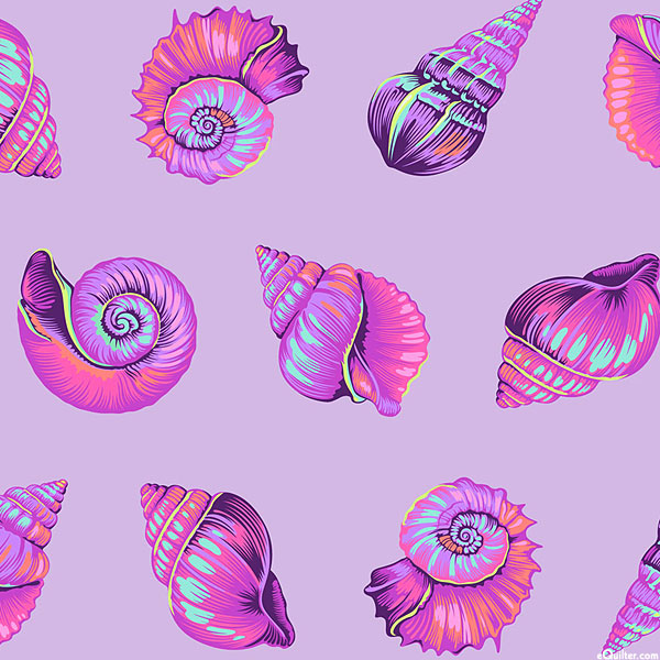 Seashells are about 2-1/2", 'Lil Shelly' from the 'Floral Reef' collection by Tula Pink for Free Spirit Fabrics.
