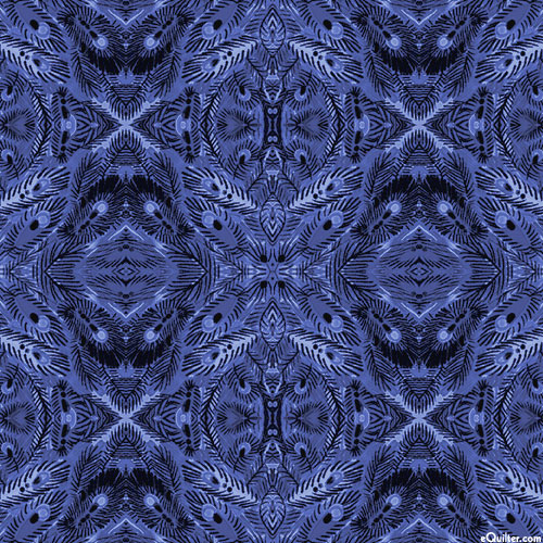 Cross-sections of a peacock's train are reflected into a kaleidoscopic cascade of color and shadow. Horizontal repeat is about 3-3/4", 'Mandalay' from the 'Affinity' collection by Danielle Duer for Benartex Fabrics.