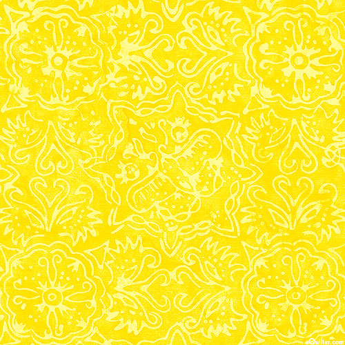 Riley Blake Designs Elementals - Floral Medallions Batik - Dandelion Yellow