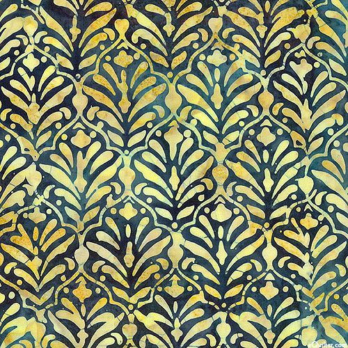 Leafy medallions brimming with elegance are depicted in vivid hues within mottled batik textures. Batik, larger leaves are about 3", from the 'Ornamental Floreale' collection by Riley Blake Designs.