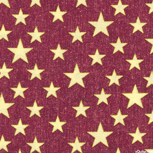 Spangled stars lend a festive flair to this proudly patriotic design. Larger stripes are about 1-1/4", with gold metallic glitter, by Fabric Traditions.