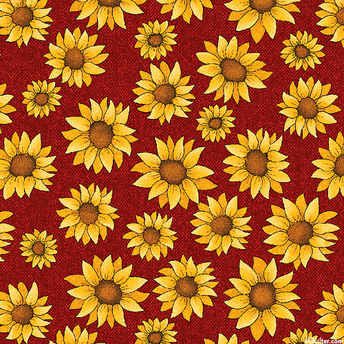 Larger sunflowers are about 1-3/4", from the 'Sunflower Days' collection by Cheryl Haynes of Prairie Grove Peddler for Benartex.
