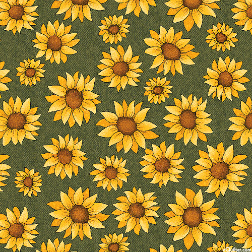 Larger sunflowers are about 1-3/4", from the 'Sunflower Days' collection by Cheryl Haynes of Prairie Grove Peddler for Benartex.