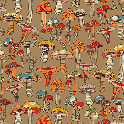 Larger mushrooms are about 1-1/2", 'Mini Mushroom' from the 'Small Wonders' collection by Valentina Harper for Benartex.