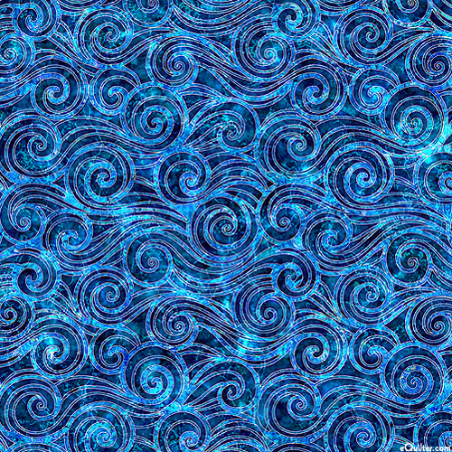 Digitally printed, larger swirls are about 1-1/4", from the 'Oceana' collection by Dan Morris for Quilting Treasures.