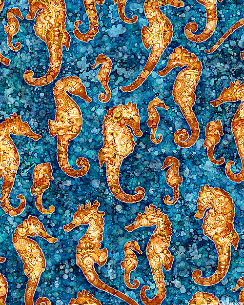 Digitally printed, larger seahorses are about 4-1/2", from the 'Oceana' collection by Dan Morris for Quilting Treasures.