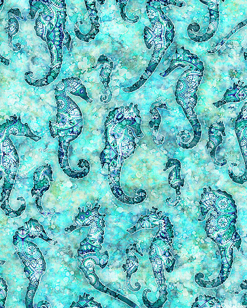 Digitally printed, larger seahorses are about 4-1/2", from the 'Oceana' collection by Dan Morris for Quilting Treasures.
