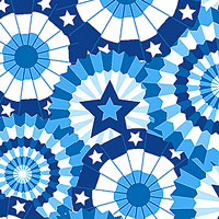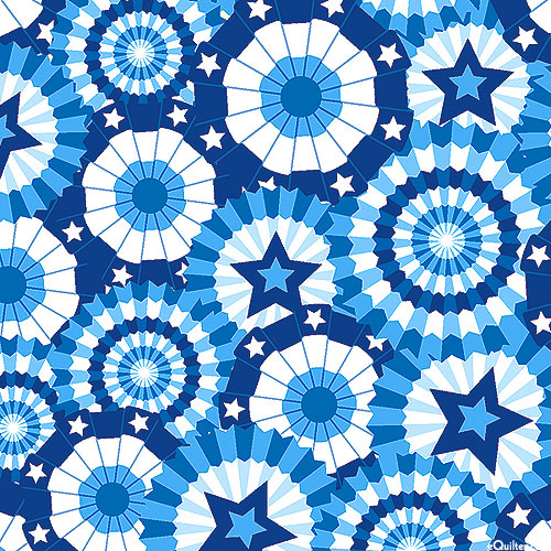 Bold medallions patterned in stars and striped overlap across this proudly patriotic design. Larger fans are about 1-3/4", 'Celebration Banners' from the 'Celebrate The USA' collection by Kanvas Studio for Benartex Fabrics.