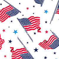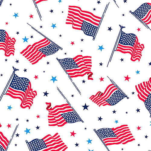 American flags billow in the wind across this proudly patriotic design. Larger flags are about 1", 'Flags Of The USA' from the 'Celebrate The USA' collection by Kanvas Studio for Benartex Fabrics.