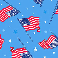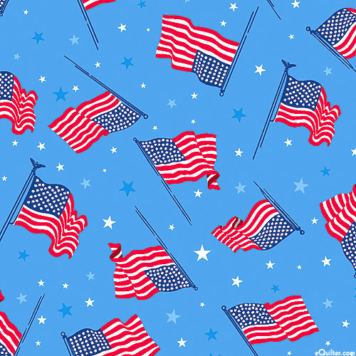 American flags billow in the wind across this proudly patriotic design. Larger flags are about 1", 'Flags Of The USA' from the 'Celebrate The USA' collection by Kanvas Studio for Benartex Fabrics.