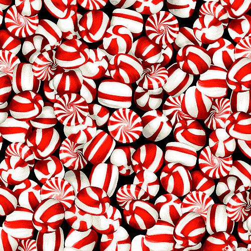 Christmas' staple candy, the peppermint coats the entirety of this busy fabric, making your mouth water just thinking about it! Larger peppermint candies are about 1", 'Holiday Peppermints' from the 'Sweet Holidays' collection by Kanvas Studio for Benartex.