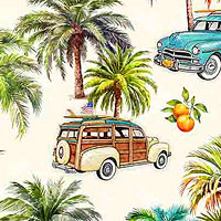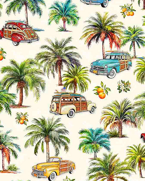 Digitally printed, taller trees are about 3", from the 'California Dreaming' collection by Dan Morris for Quilting Treasures.