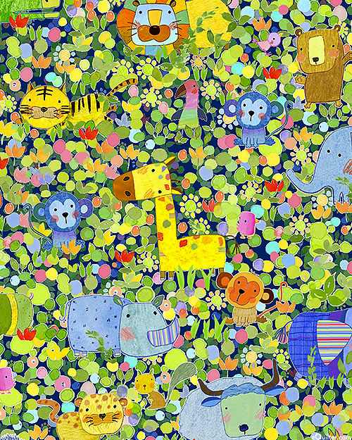 Digitally printed, larger animals are about 3-1/4", from the 'Jungle Friends' collection by Studio Reiko for Quilting Treasures.