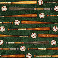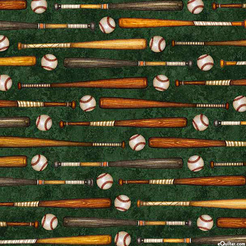 Digitally printed, larger baseball bats are about 4-1/4", from the 'Bases Loaded' collection by Dan Morris for Quilting Treasures.