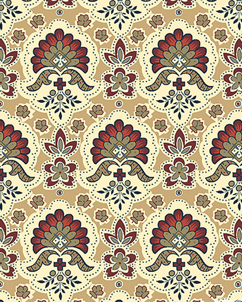 Larger flowers are about 1-1/4", from the 'Canterbury' collection by Antiquities for Quilting Treasures.