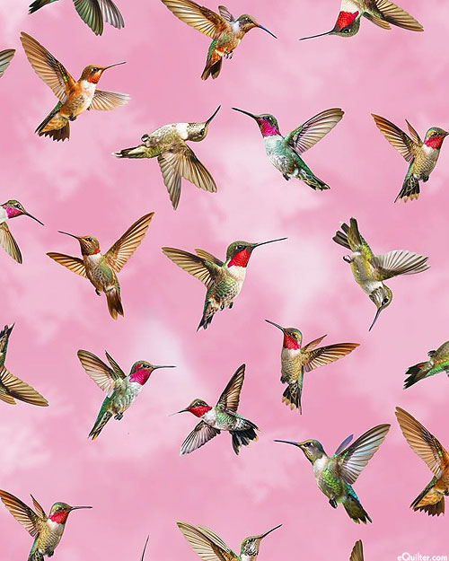 Hummingbirds hover gently on the mottled surface of this peaceful print. Digitally printed, larger birds are about 2", 'Hummingbird Harmony'. Printed in the USA.