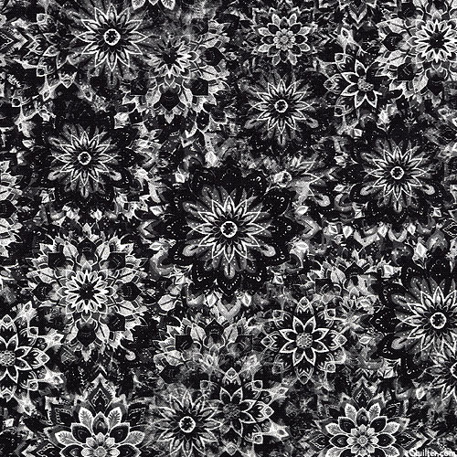 Geometric florals coalesce in a kaleidoscopic cascade of color and shadow across this vibrant design. Digitally printed, larger medallions are about 2-1/2", 'Dancin' Dahlias'. Printed in the USA.