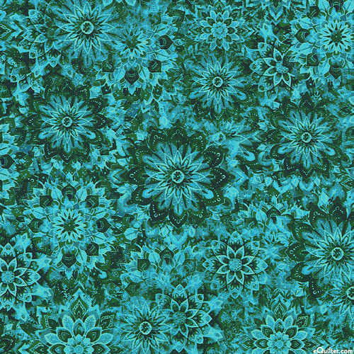 Geometric florals coalesce in a kaleidoscopic cascade of color and shadow across this vibrant design. Digitally printed, larger medallions are about 2-1/2", 'Dancin' Dahlias'. Printed in the USA.