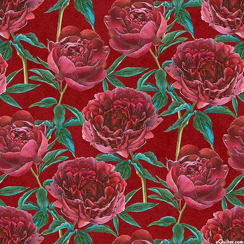 Larger flowers are about 2-1/4", from the 'Crimson Blooms' collection by Beth Grove for Wilmington Prints.