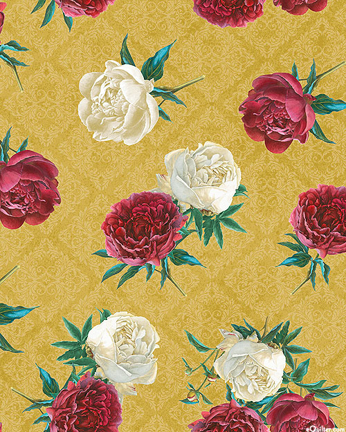 Larger flowers are about 2", from the 'Crimson Blooms' collection by Beth Grove for Wilmington Prints.