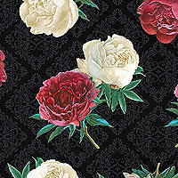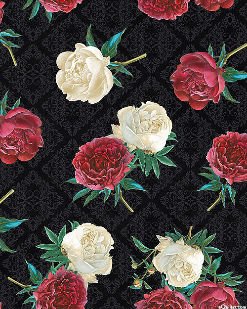 Larger flowers are about 2", from the 'Crimson Blooms' collection by Beth Grove for Wilmington Prints.
