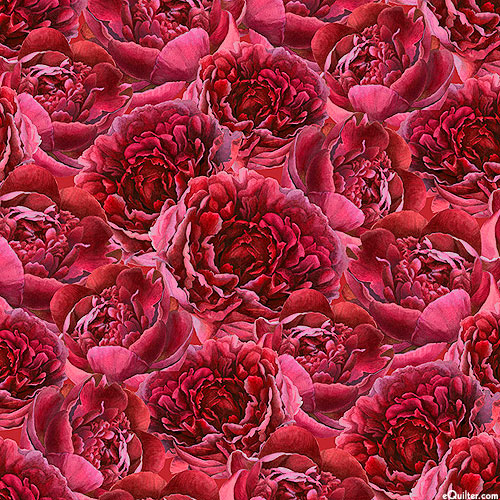 Larger flowers are about 2-1/2", from the 'Crimson Blooms' collection by Beth Grove for Wilmington Prints.