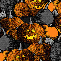 Larger pumpkins are about 2", from the 'Moonlit Manor' collection by Lisa Jane Smith for Wilmington Prints.