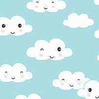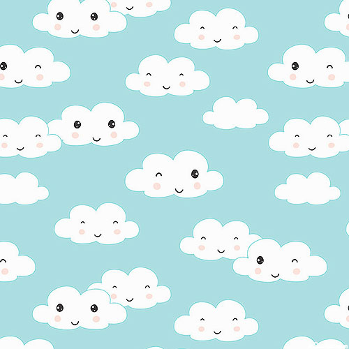 Larger clouds are about 1-3/4", from the 'Rainbow Dreams' collection by Jenny Faw Design for Wilmington Prints.