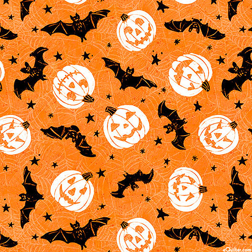 Larger bats are about 1-1/2", from the 'Midnight Hauntings' collection by Michael Davis for Wilmington Prints.