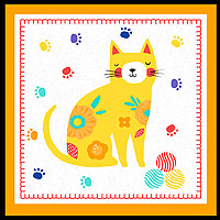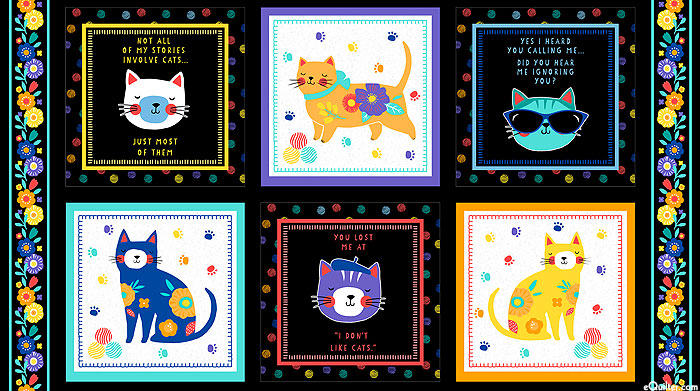 25" panel, panel has six frames about 11-1/4" x 11-1/4", from the 'Fe-Line Frisky' collection by Anne Rowan for Wilmington Prints.