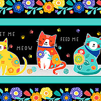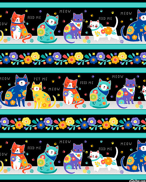 Wider stripes are about 5", stripes run the length of the fabric, from the 'Fe-Line Frisky' collection by Anne Rowan for Wilmington Prints.