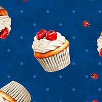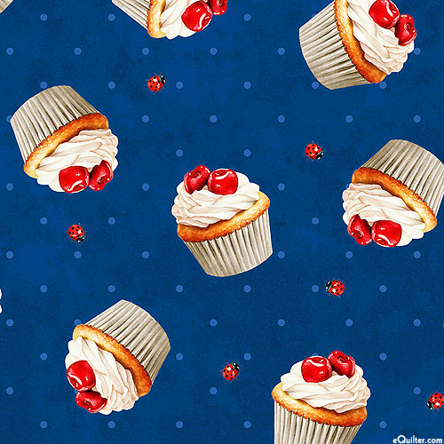 Larger cupcakes are about 1-3/4", from the 'Sweet Cherry' collection by Anne Rowan for Wilmington Prints.