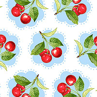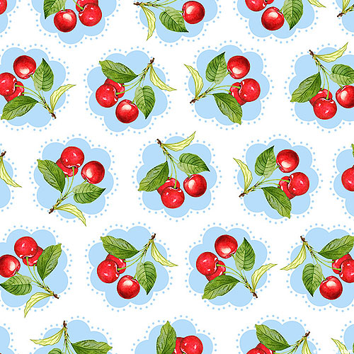 Larger medallions are about 1-1/2", from the 'Sweet Cherry' collection by Anne Rowan for Wilmington Prints.