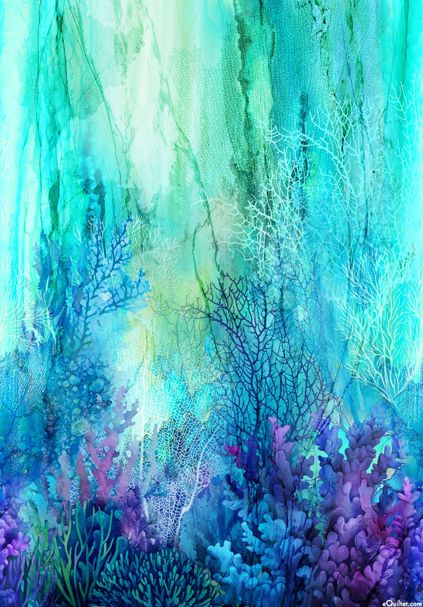 Please prewash and allow for up to 7% shrinkage. Digitally printed, 108" quilt backing, single border print, from the 'Coral Reef' collection by Deborah Edwards and Melanie Samra for Northcott Fabrics.