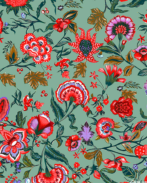 A lush landscape of radiant blossoms bring a garden charm to this elegant design. Larger flowers are about 2", 'Green Dream 1' from the 'Green Dream Trio' collection by Sumit Gill of sgDesigns for Mia Presley Designs.