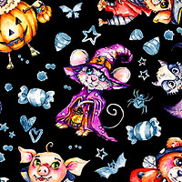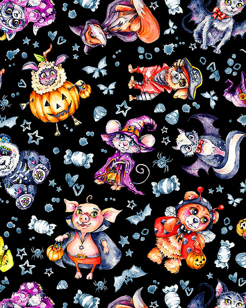 Larger animals are about 3-1/2", from the 'Little Darlings Halloween' collection by Sillier than Sally Designs for P&B Textiles.