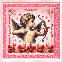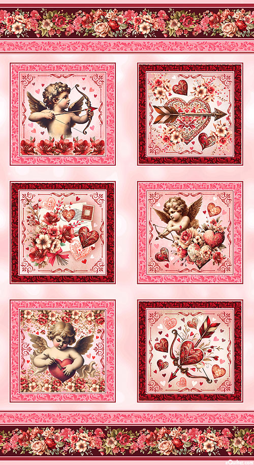 24" panel, panel has six frames about 9-3/4" x 10-1/4", 'Cupid's Arrow Panel' from the 'Cupid's Arrow' collection by Nicole DeCamp for Benartex Fabrics.