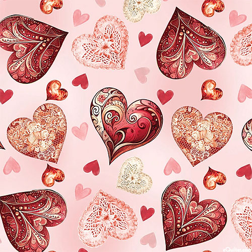 Larger hearts are about 2", 'Romantic Hearts' from the 'Cupid's Arrow' collection by Nicole DeCamp for Benartex Fabrics.