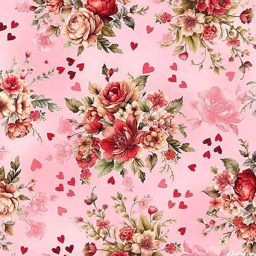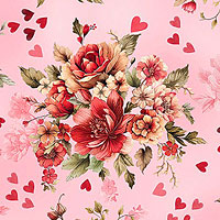 Larger bouquets 5", 'Cherished Bouquets' from the 'Cupid's Arrow' collection by Nicole DeCamp for Benartex Fabrics.