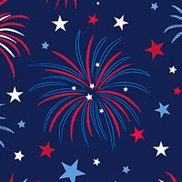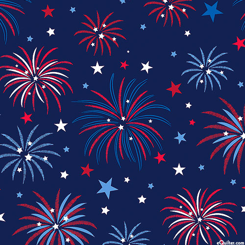 Larger fireworks are about 2-3/4", 'Patriotic Fireworks' from the 'Celebrate The USA' collection by Kanvas Studio for Benartex Fabrics.