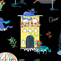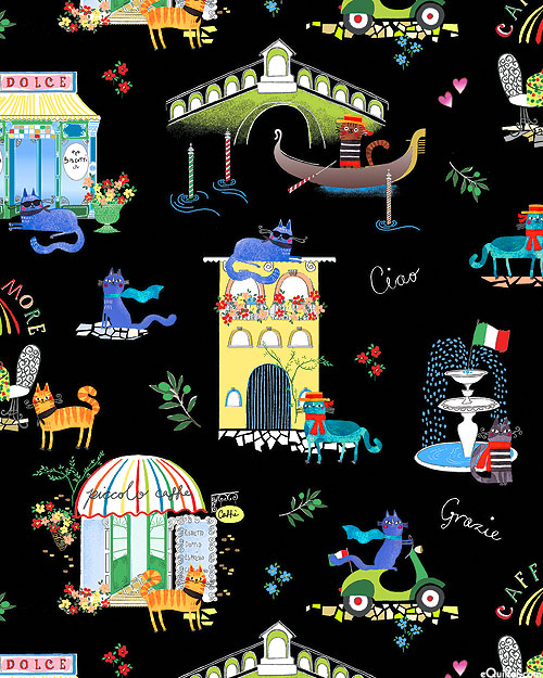 Larger scenes are about 5-1/2", 'Ciao Bella Cats' from the 'Ciao Bella' collection by Terry Runyan for Benartex.