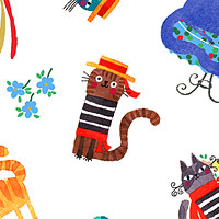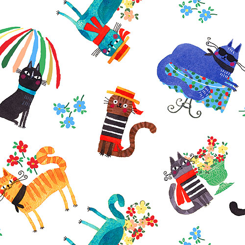 Larger cats are about 2", 'Caffe Cats' from the 'Ciao Bella' collection by Terry Runyan for Benartex.