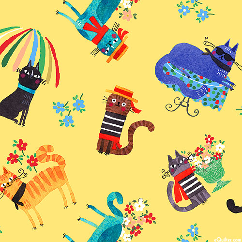 Larger cats are about 2", 'Caffe Cats' from the 'Ciao Bella' collection by Terry Runyan for Benartex.
