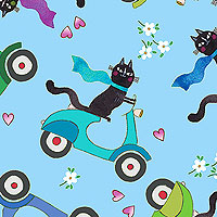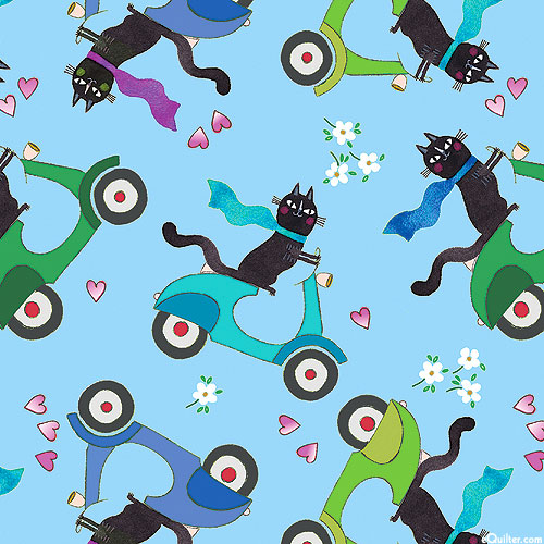Larger cats on bikes are about 2-1/2", 'Cycle Cats' from the 'Ciao Bella' collection by Terry Runyan for Benartex.