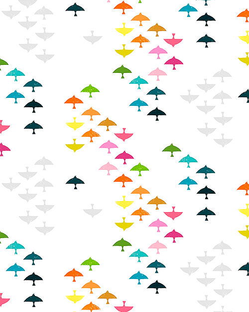 Flocks of birds ebb and flow through a spectrum of color and shadow in this dynamic design. Larger birds are about 1/2", 'In Flight' from the 'What The Birds Said' collection by Cori Dantini for Free Spirit.